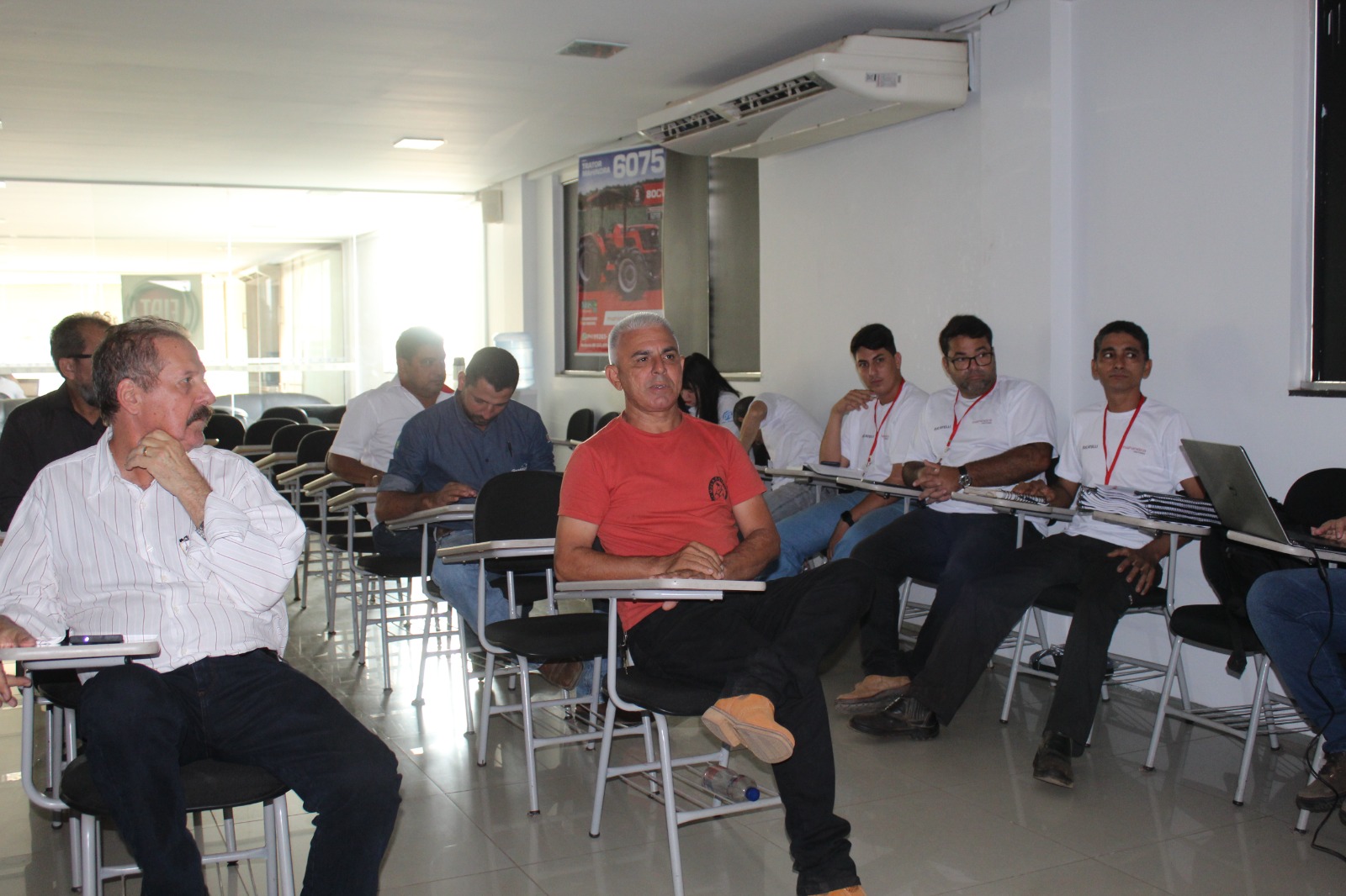 Dividido em ensinamentos teórico e prático, os participantes realizaram desmontagem, montagem e ajustes dos componentes internos do motor, transmissão e dos sistemas hidráulico e elétrico do trator MAHINDRA. .