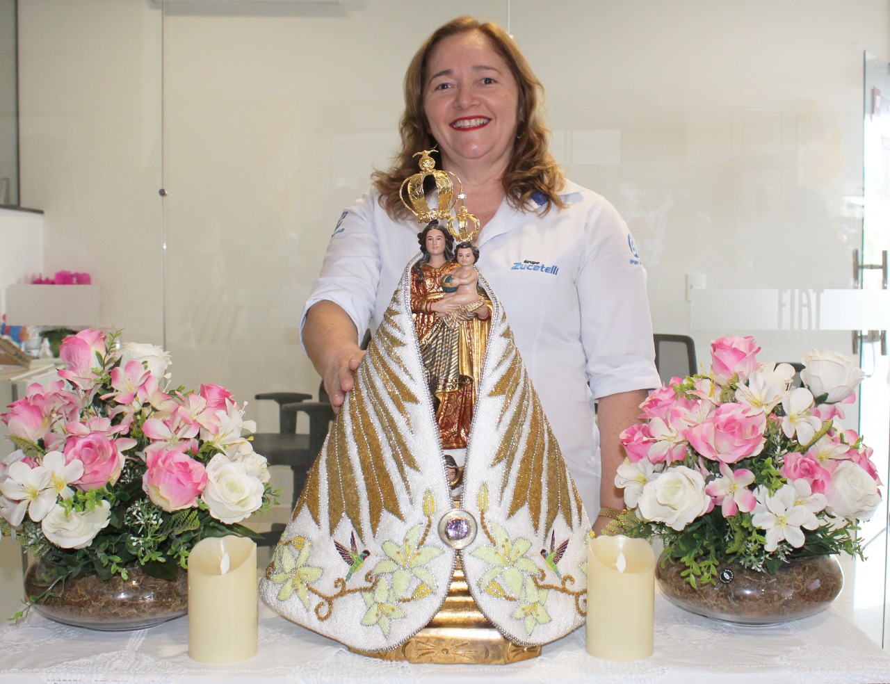 Nesta quinta-feira (13) cumprindo a agenda de peregrinações externas, a imagem peregrina de Nossa Senhora de Nazaré visitou a sede do Grupo Zucatelli onde foi recepcionada no salão da Concessionária Fiat Zucavel.
