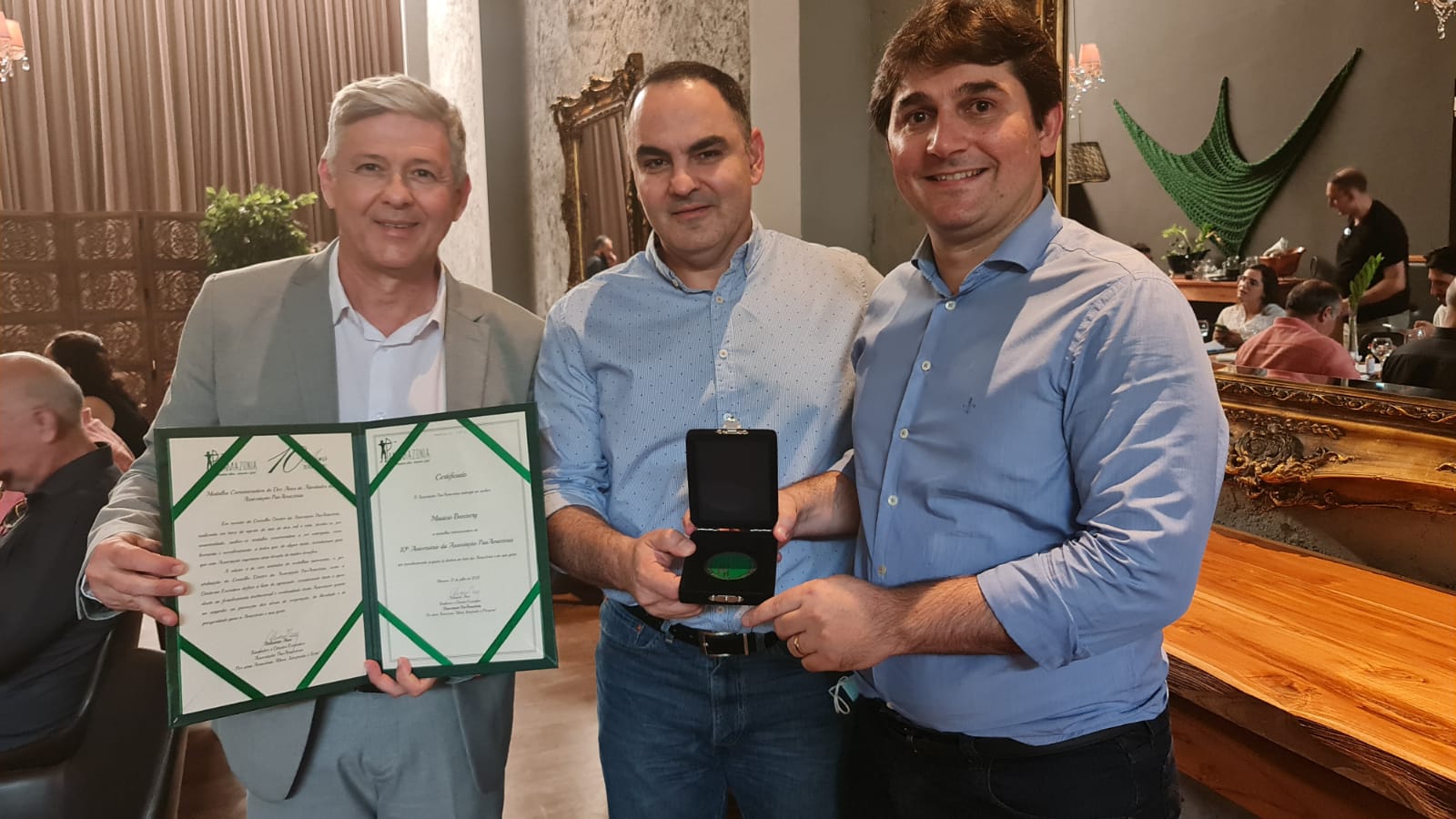 A Associação PanAmazonia aproveitou a presença de alguns de seus diretores em Porto Velho para entregar ao Conselheiro João Paulo Lima, Diretor da SEAX, a medalha comemorativa dos dez anos da Associação PanAmazonia, assim como a presença do conselheiro Maurício Benzecry para lhe outorgar a mesma honraria.
